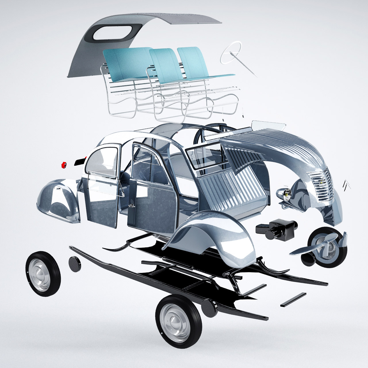 Ces nouveaux outils permettent de s'affranchir des notions d'échelle ou de gravité afin d'accroître l'appréhension ou la compréhension d'un objet donné. Dans le cas de cette Citroën 2CV de 1949, nous avons ici la possibilité de l'observer et de la comprendre en profondeur grâce à des points de vue inédits, voire impossibles dans le cas des vues en coupe. Ainsi, des concepts clés de ce véhicule comme le châssis-échelle pris en sandwich entre deux plaques de tôles, un châssis révolutionnaire pour l'époque car léger et très rigide, nous apparaît facilement visible et compréhensible.