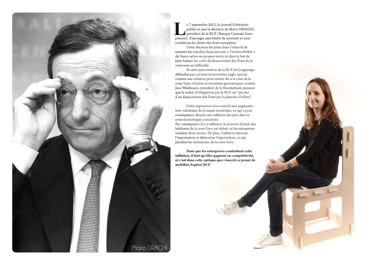 Ce mobilier fût une réponse à la décision de Mario DRAGHI, président de la Banque Centrale Européenne, d'éponger sans limite de montants et sous conditions les dettes des Etats Européens. Cette décision a été saluée par une partie des économistes, mais également critiquée par d'autres, voyant en cette solution une technique "proche d'un financement par la planche à billets".