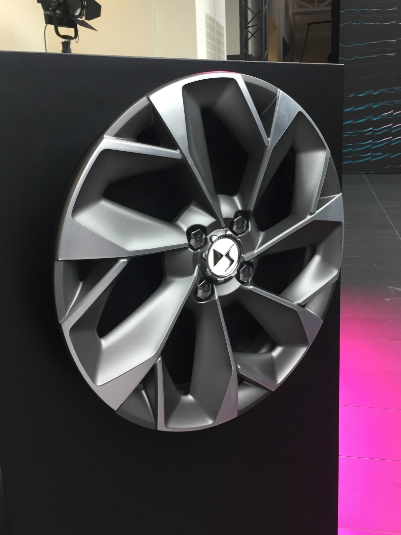 Cette jante à sept branches équipant la version électrifiée de DS3 Crossback a fait l'objet d'une approche de conception différente des autres jantes de la gamme DS3. Le but était de trouver un style valorisant le véhicule sans nuire à ses performances aérodynamiques ni à son poids. Pour cela, outre le nombre de branches revu à la hausse, s'ajoutent les ajourages dont la forme se trouve être plus fine sur la périphérie.