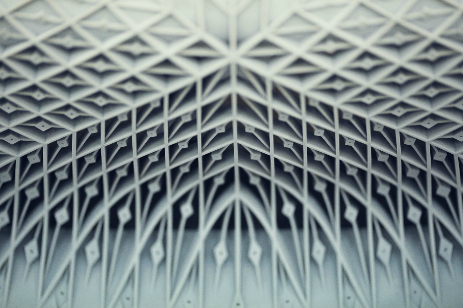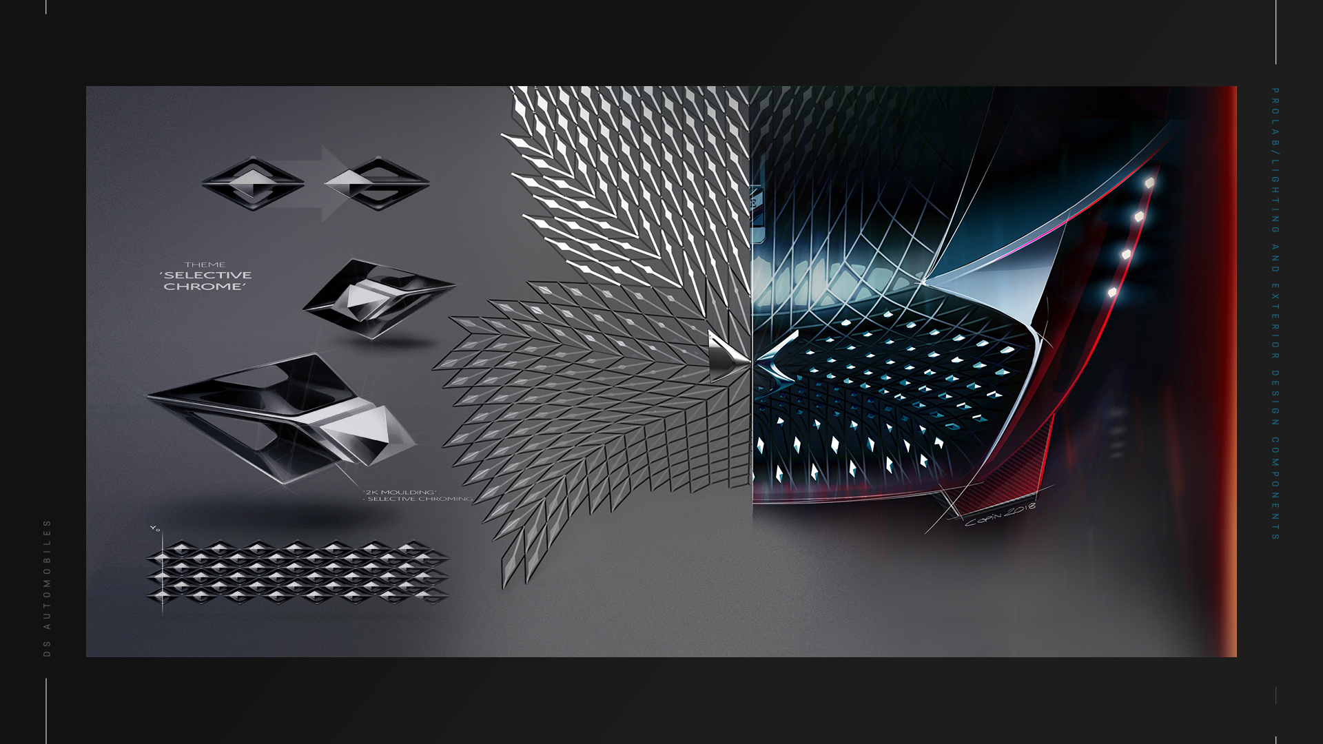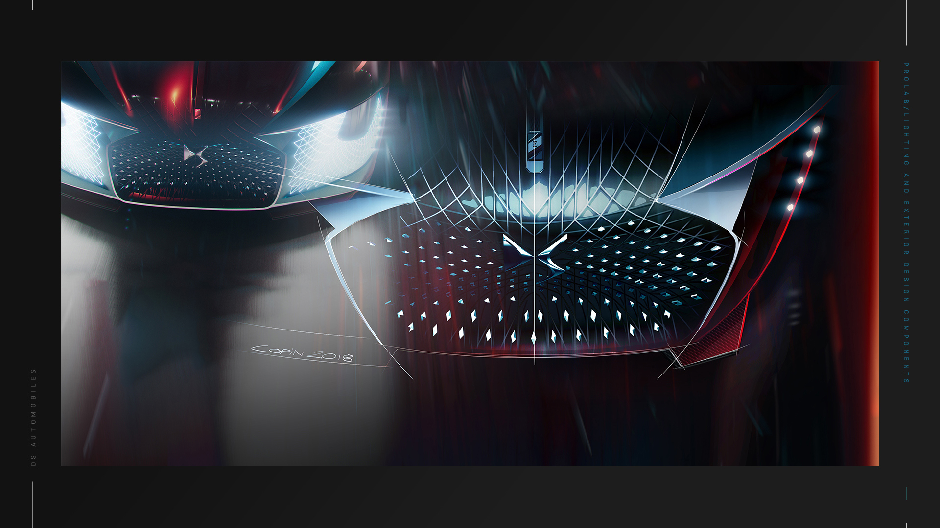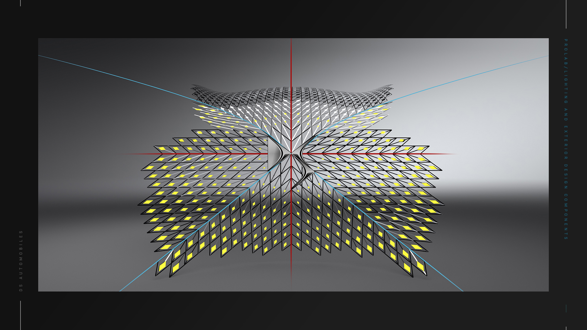 Ceci est un concept de grille de conception paramétrique, imprimée en 3D et réalisée dans le cadre du concept-car DS X E-tense en 2018.